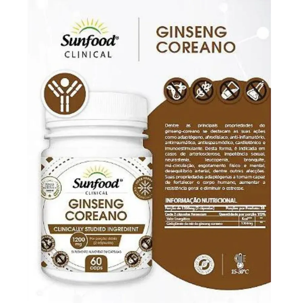 Experimente o Poder do Ginseng Coreano com o Extrato Seco Sunfood - 60 Cápsulas 1200mg